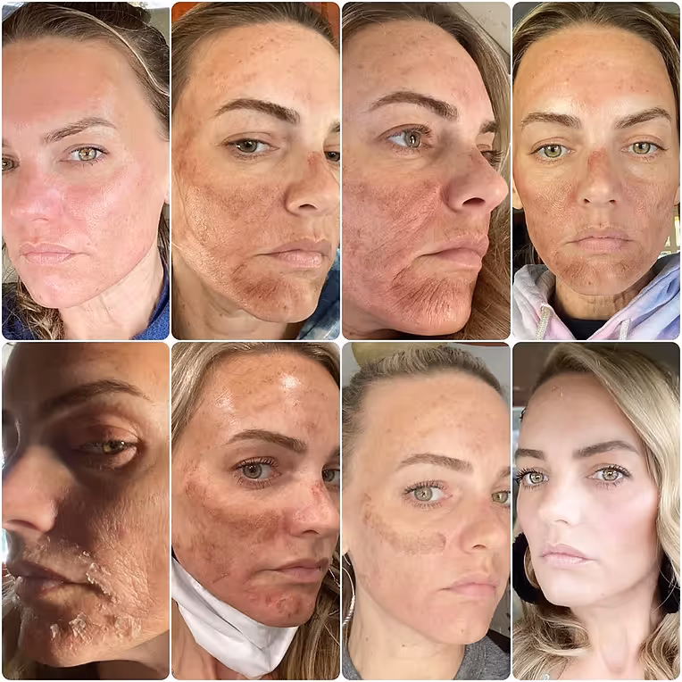 Light: 1–3 days flaking; Medium: 5–7 days peeling
