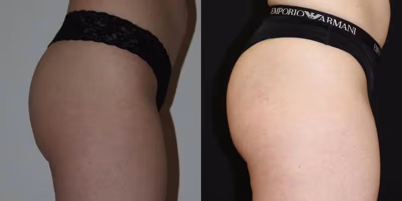 For gluteal enhancement, Sculptra works by stimulating collagen production in the buttocks. When injected, PLLA microparticles initiate a natural regenerative process, thickening tissue and gradually adding projection and lift. Over a series of treatments, the glutes become fuller, firmer, and more contoured without the need for implants or surgery. Results appear gradually but last for years.