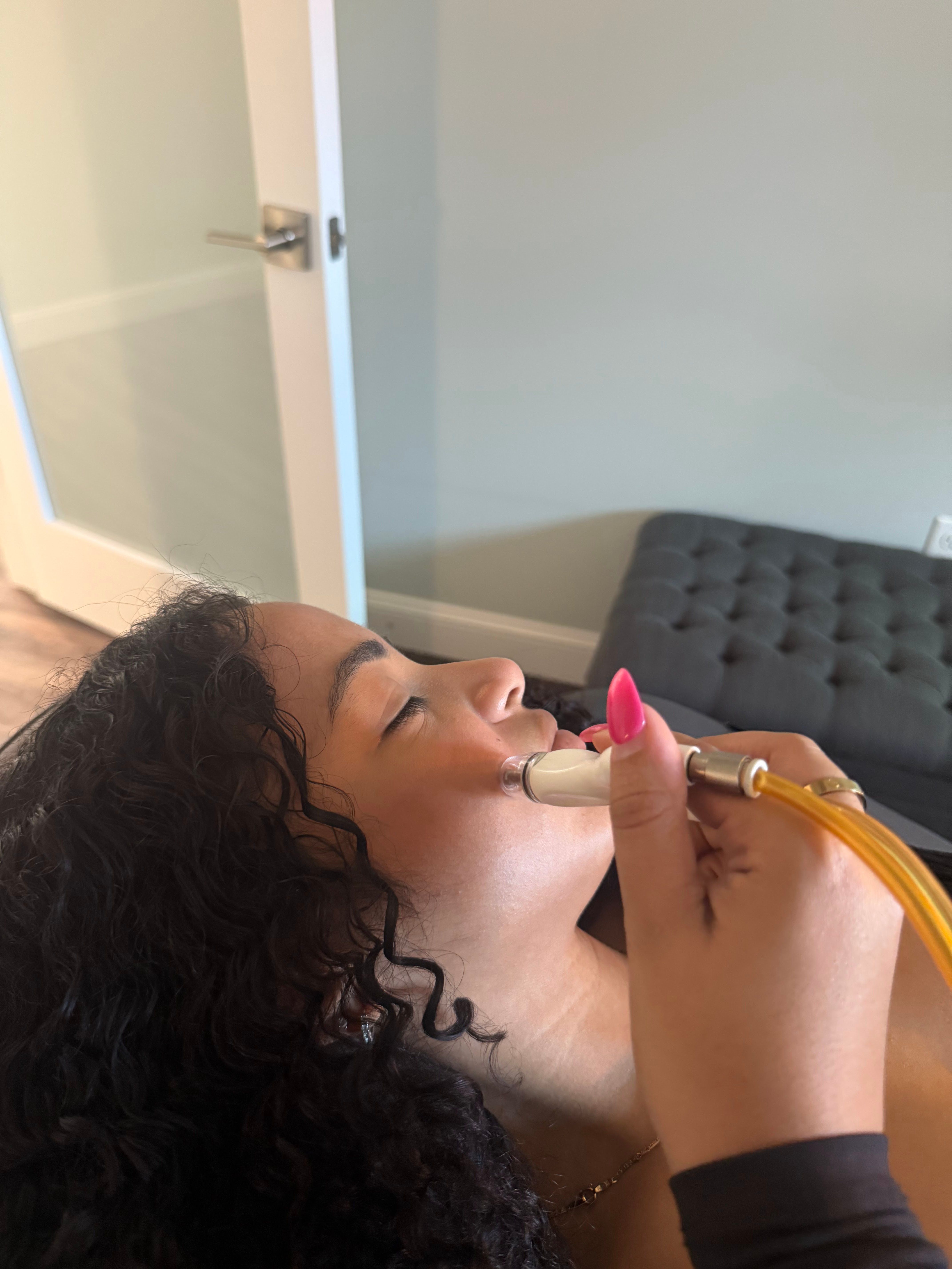 A hydrating facial treatment that infuses oxygen and serums into the skin to plump, brighten, and refresh.